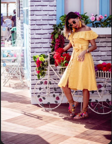 2. Floral midi-dress with flat sandals