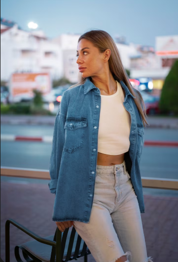 An oversized shirt always conveys a relaxed, effortless vibe. I like how it feels loose and comfortable while remaining stylish. Pairing it with cut-off jeans keeps the look casual and fun, while heels add some balance. It’s the type of look that exudes cool without trying too hard. I like this for lunch dates because it appears confident, easy, and natural, like something I would wear on a good day.