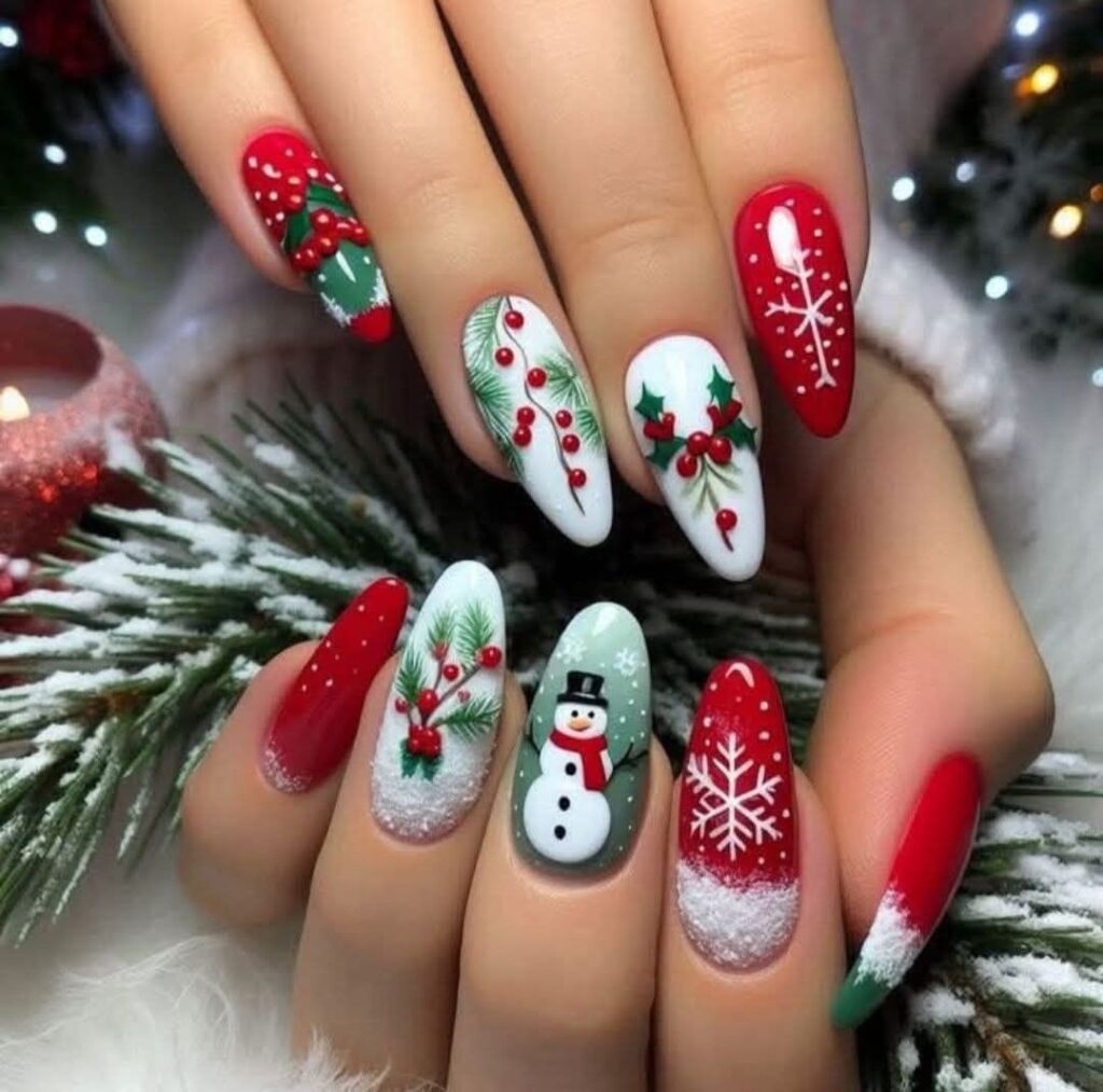 For those who enjoy combining classic themes with an unexpected twist, these vivid and striking trees offer a modern and fresh take on holiday nail art. Your nails will undoubtedly take center stage with this style.
