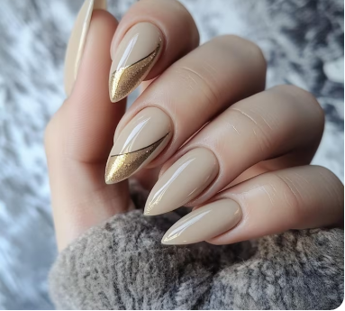 Although naked nails always appear neat and well-groomed, they really shine when a little gold is added. A gold accent on one or two fingers adds a little sparkle without being overly ostentatious, and a soft nude base is ideal for any occasion. For those who prefer subtle glam, it’s sophisticated and subtle, adding a hint of glitz to a natural appearance.