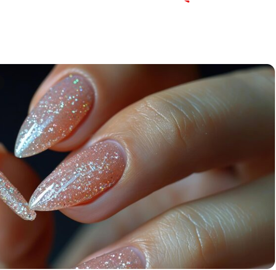 A tiny bit of sparkle makes a big difference. Your nails feel elegant, sophisticated, and slightly playful when you add a glittery touch to the tips. It keeps things elegant and delicate while still catching the light, much like a glittery French tip. It works well for adding a bit of sparkle without going overboard.