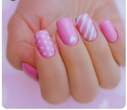 If you enjoy creative designs, a pink background with black swirl art is perfect. With swirls or abstract shapes that give each nail a distinctive appearance, this artistic design gives your nails a playful edge. It adds a unique, imaginative feel that is anything but dull, and it’s like having miniature works of art on your fingers.