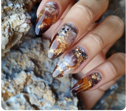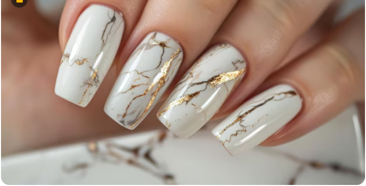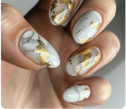Marble nails are always gorgeous, especially when they have subtle flecks of gold. Adding gold gives your nails a luxurious appearance, while the marble effect gives them a distinctive texture and design. With a sophisticated edge that is ideal for anyone who enjoys a little refinement, the combination feels like a work of art at your fingertips.