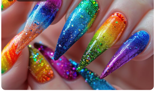 Each nail has a distinct pastel color, like soft yellow, baby blue, or blush pink. This produces a soft rainbow effect that is adorable and entertaining. It’s ideal for anyone looking to add some color in a delicate, lovely way. It is lovely and appropriate for any setting thanks to the pastel colors.