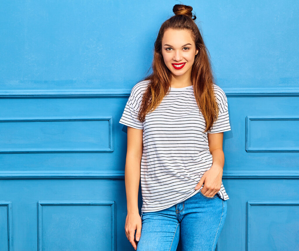 Wearing a casual T-shirt allows you to look stylish and chic. Wearing a casual tee is as simple as putting on jeans, trainers, sandals, or heels to look cool. Look stylish and chic by wearing a casual T-shirt. Wearing a casual tee is as easy as putting on jeans and trainers, sandals, or heels to make you look cool.